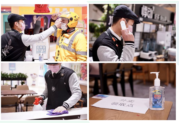 在管理上,員工每天測溫上崗,全程口罩防護,門店環境、器皿定時消毒,使用免排隊小程序點單。外賣騎手測溫防護,上線“安心卡”安全管理,全程無接觸外賣配送。