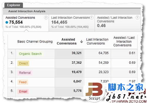 以上案例中可以發現,如果我們沒有做渠道組合優化(而實際上需要),可以看出Email渠道的數據(1.18 輔助轉化次數/最終互動轉化次數),在暗示我們與Organic Search(0.61)相比,應該為Email渠道制定營銷優化與預估策略。