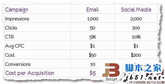CPA應作為分析報告中的最佳度量之一,其中展示次數(Impressions)、點擊數(Clicks)、點擊率(CTR)、平均每次點擊成本(Avg CPC)、轉換(Conversions)等度量數據均可通過Google Analytics、Omniture等網站分析工具獲得,但是成本(Cost)需要自行核算。