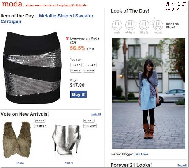 我們的2010在線零售百強熱榜上的商家不是只簡單做一個Facebook和Twitter頁面來撐門面,而是讓花心思讓用戶會積極主動地想到訪問這些頁面。例如青少年服裝品牌Forever21就在自己的Facebook頁面上吸引了超過51萬名粉絲,品牌支持者可以在這里看到最新款的服裝并進行評分和分享,同時這里還有有趣的比賽,大量的圖片和活躍的論壇討論。