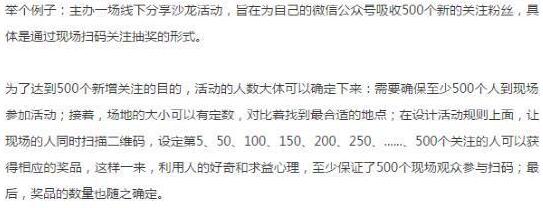 最后,我想提醒大家的是:借助活動增粉,并不一定要親自策劃并執行,現在很多活動采用合作共贏的方式,由一家或多家主辦,其他協辦。因此,在沒有好的活動idea,或者時間、資金不足的情況下,作為協助方參與到活動中,是明智的做法,在活動中展示自己的公眾號品牌和二維碼,也一樣能起到吸粉的作用。