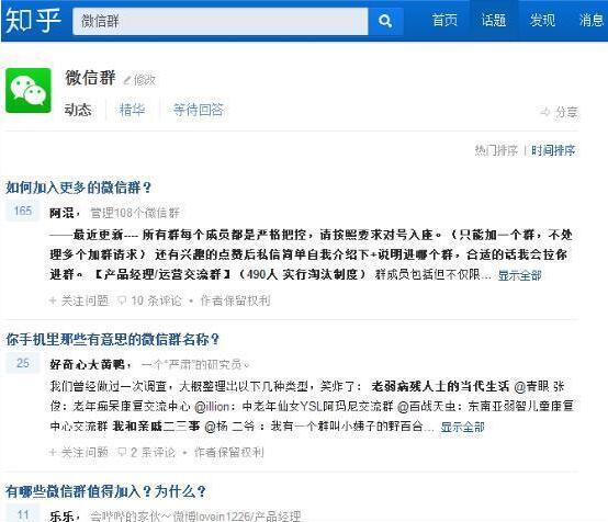 另外,如果是利用知乎的話,可以直接在搜索欄中輸入“微信群”、“QQ群”這樣的關鍵詞進行檢索。
