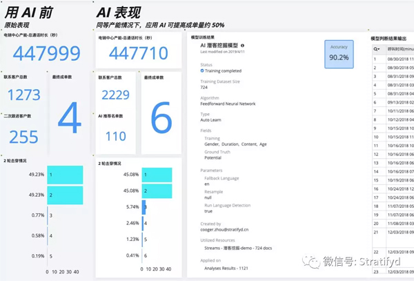 最重要的是,Stratifyd提出了AI工作流的理念,即企業可以對結構化數據可視化、非結構化數據挖掘、AI模型預測等分析任務進行有機結合,打造自動化分析流程。大幅降低企業在處理數據時浪費的時間和精力,高效發現很多有價值的商業洞察,用數據分析驅動決策。
