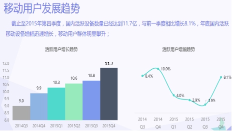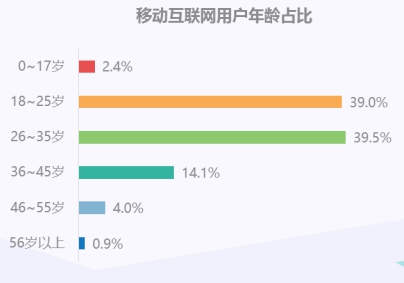 什么樣的用戶群體上網最多,如果你連這個都把握不到,還如何做出一個有流量的網站呢?舉個例子來講:20多歲的女孩子喜歡做什么?消費、追星、娛樂、購物……而30歲的女人呢?家庭、孩子、美食……我們來看一下2015年的移動用戶占有比例: