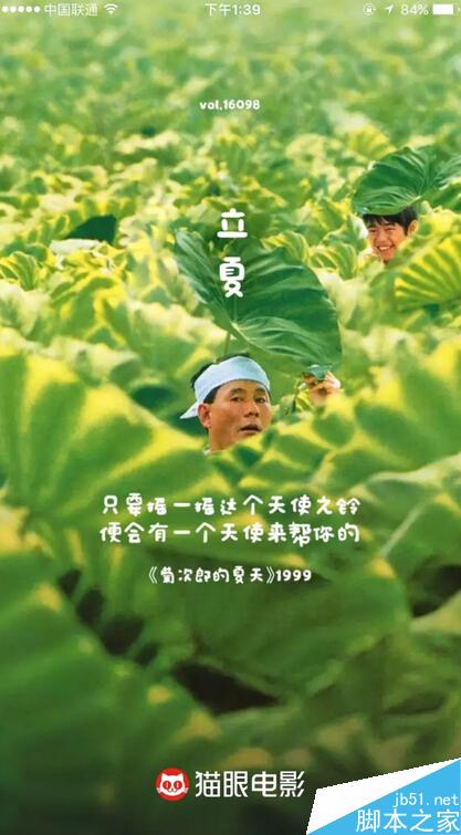 說一下自己家的產品。一般情況,貓眼每天都會推出一張啟動圖,內容是電影海報+一句話文案,負責這件事的運營,是一個有幾千部觀影量并且很有審美追求的同學。隨便截一張今天的,下圖: