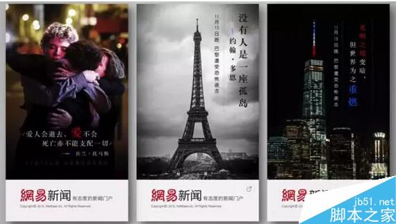 這是在面對「巴黎恐怖襲擊」這樣的大事件時,網易新聞做出的響應之一。以人文關懷的角度,去傳遞產品的品牌形象。