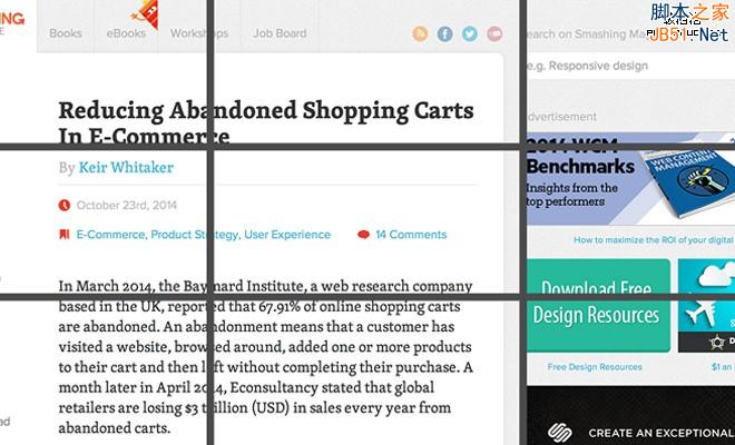了解三分法的柵格的運用方式之后,你還需要明白更重要的一點:三分法帶來的并非是一個無可挑剔的網(wǎng)頁設(shè)計架構(gòu),而是一個用來微調(diào)現(xiàn)有設(shè)計的布局測試框架。