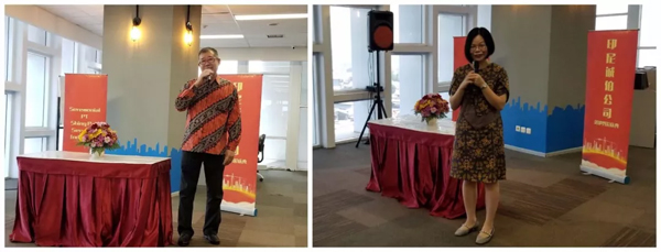 左:印尼僑領郭先生致辭 右:誠伯公司陳律師致辭>