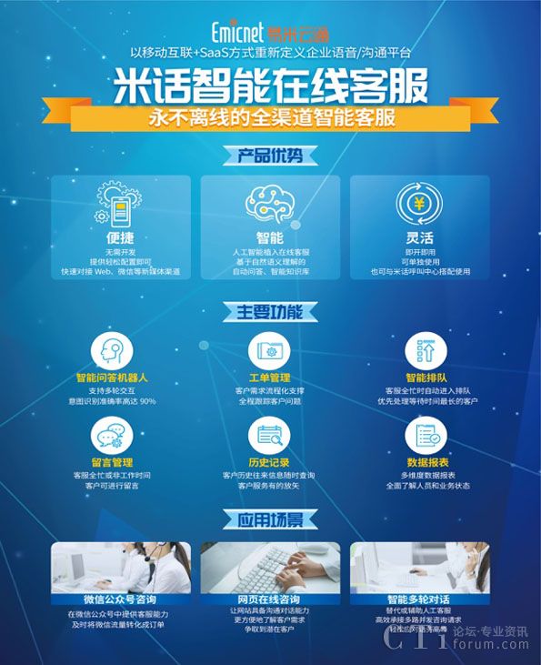 傳統(tǒng)客服模式存在難以解決的弊端,在技術(shù)進(jìn)步的推動(dòng)下,催生了云呼叫中心的誕生,易米云通新一代云呼叫中心就是國內(nèi)市場上的領(lǐng)先者。易米云通專注于以移動(dòng)互聯(lián)+SaaS方式重新定義企業(yè)語音/溝通平臺,構(gòu)建了智能語音機(jī)器人、智能在線客服、智能語音平臺等眾多智能化工具,完美解決了傳統(tǒng)客服模式的弊端,幫助商家和物流快遞在暴漲的客戶咨詢數(shù)量面前也能輕松應(yīng)對。