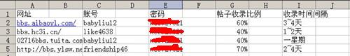 然后我們在就可以利用站長工具對這些論壇逐一進行考察了解,包括收錄頻率、論壇活躍度、權重等等,最后再把可以用的篩選出來,記錄在excel表格上面,筆者在這里可以把我自己做的一個表格的一部分截圖給大家看看: