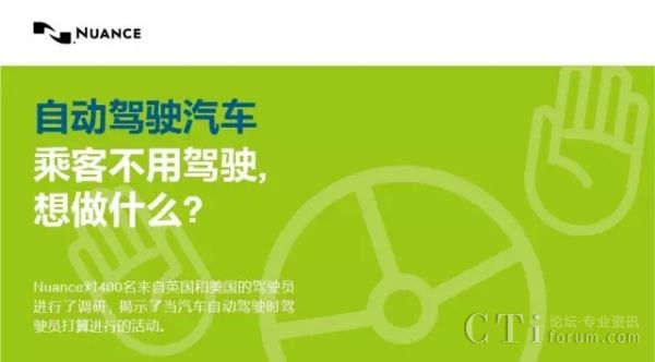巨人網(wǎng)絡(luò)通訊聲明:本文標(biāo)題《Nuance:自動(dòng)駕駛汽車,乘客不用駕駛, 想做什么?》,本文關(guān)鍵詞 Nuance,自動(dòng),駕駛,汽車,乘客,;如發(fā)現(xiàn)本文內(nèi)容存在版權(quán)問(wèn)題,煩請(qǐng)?zhí)峁┫嚓P(guān)信息告之我們,我們將及時(shí)溝通與處理。本站內(nèi)容系統(tǒng)采集于網(wǎng)絡(luò),涉及言論、版權(quán)與本站無(wú)關(guān)。