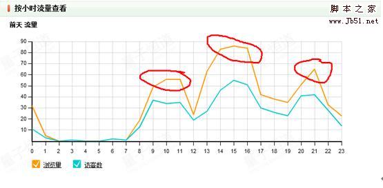 上面的圖是某派友店鋪某天的每小時流量曲線圖,從中我們觀察到這個店鋪流量的三個黃金點 上午10點 下午14點-16點 晚上 21點。這樣我就可以按照這個分別部署上架的寶貝了。