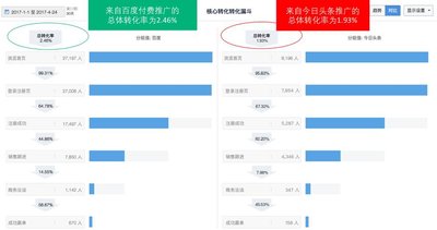 圖5“百度”和“今日頭條”付費渠道的營銷漏斗最終轉化