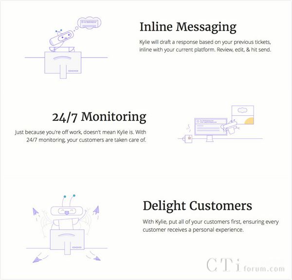 客戶支持遠比簡單聊天的客服工作復雜,和chatbots相比,Kylie.ai將工作能力提升到了另外一個層級: