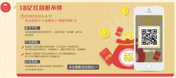 在今年馬年春節期間,微信紅包開始大熱。現在微信紅包不僅是節假日必備的互動方式,也是商家促銷的利器。而在蘇寧易購此次818店慶中,也開始利用微信紅包的形式攻占網友的朋友圈和社交關系鏈,最終促進網友在蘇寧易購的銷售。