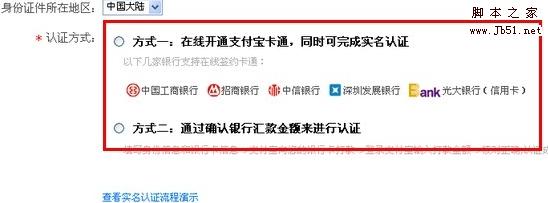 請正確選擇您身份證件所在的地區(qū),正確選擇后才能順利的完成您的支付寶實(shí)名認(rèn)證;(此流程以中國大陸用戶為例)