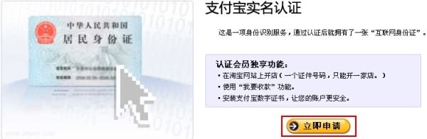 進(jìn)入支付寶實(shí)名認(rèn)證的介紹頁面,請點(diǎn)“立即申請”繼續(xù);