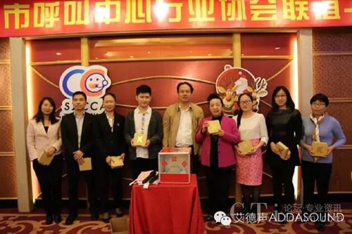 2015年12月24日, 深圳市呼叫中心行業協會第二屆二次會員大會在鵬城深圳隆重召開!深圳市民政局、通信管理局、經濟貿易和信息化委員會的領導,協會會長、秘書長、理事、監事及各會員單位代表共100多人出席了本次呼叫中心行業盛會。廣州艾德聲電子技術有限公司董事長狄敏先生,銷售經理張麗娜女士受邀出席了本次行業盛會。