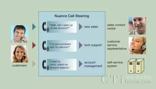 通過自然語言技術(shù)為您提供準(zhǔn)確、經(jīng)濟(jì)的路由解決方案。自助服務(wù)系統(tǒng),特別是按鍵式自助系統(tǒng)通常選項復(fù)雜,酷似迷宮。這容易導(dǎo)致錯誤的來電路由,帶給客戶糟糕的使用體驗。錯誤來電路由轉(zhuǎn)接耗費時間,會令客戶感到不悅。Nuance的來電導(dǎo)航解決方案通過單一接入點提供準(zhǔn)確、經(jīng)濟(jì)的來電路由。來電導(dǎo)航系統(tǒng)會詢問呼叫者“有什么可以幫您的嗎?”,允許客戶用自己的語言描述需求,然后,系統(tǒng)將呼叫者轉(zhuǎn)向適當(dāng)?shù)淖灾?wù),或直接聯(lián)系呼叫中心。