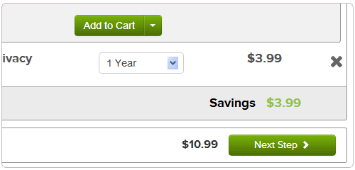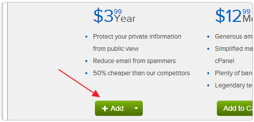 3、在購物車中,點擊添加3.99美元一年的Whois保護服務(wù)。