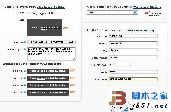 網(wǎng)站排名已經(jīng)成為一個網(wǎng)站重要標準,盡管排名數(shù)據(jù)與實際有一定的出入,但是用他來大體衡量一個網(wǎng)站的價值效果還是可靠的。要讓客戶感覺你的網(wǎng)站是正規(guī)的就很有必要向ALEXA提交下你的網(wǎng)站信息,近來小編也新弄了一個關于移動硬盤的站點,去ALEXA提交信息卻發(fā)現(xiàn)ALEXA和原來提交方法不同了,可幸的是鄙人英語水平還一般,不一會就找到方法,并成功提交了,接下來我就寫了這樣一個《新版alexa提交步驟詳解(2012附圖完整版本)》希望對朋友們有幫助。 1、進入ALEXA排名的官方網(wǎng)站,相信大家都知道地址,這里就不例出來了,記得是com后綴的哦! 2、在首頁的右上角 Log In or Create an Account有帳號的直接登錄,此步驟可不看直接看第3步,無帳號的需要注冊,點擊Create an Account注冊帳號如圖1,輸入你的郵箱與昵稱,點擊確認,然后去驗證郵箱后設置你的帳號密碼,登錄帳號是郵箱,密碼就是你設置的密碼