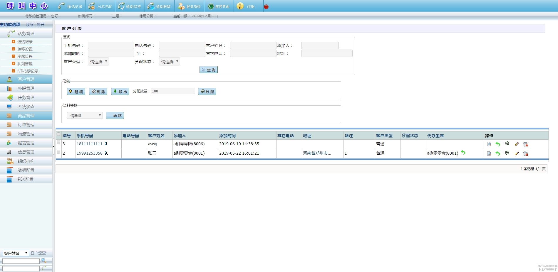系統可以實現對工作坐席的任務分配;