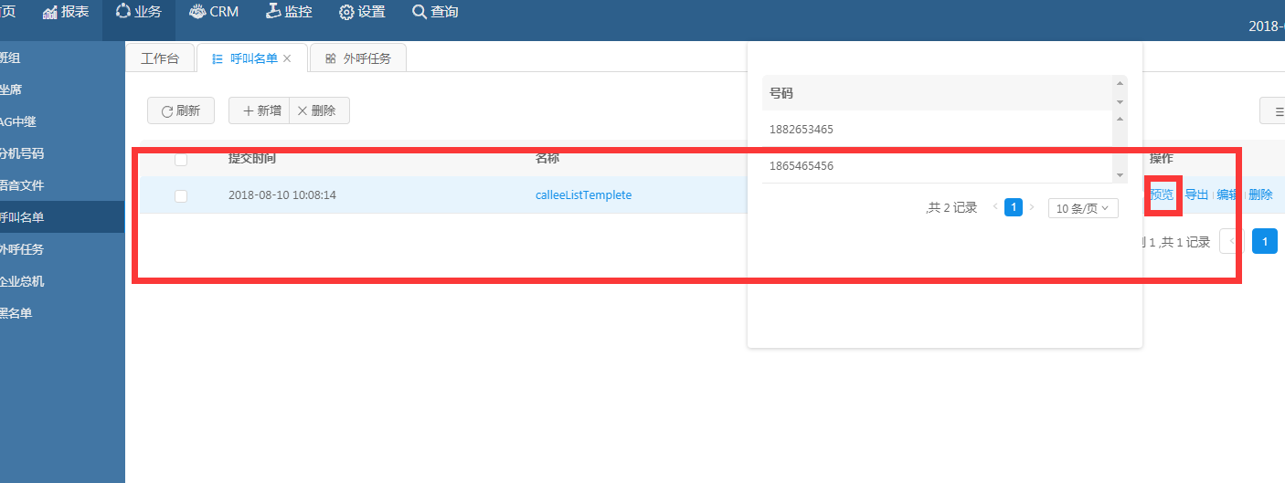 eyebeam電話呼叫軟件是一款即時通信電話撥打軟件,可以實時進行多媒體通信,豐富了VoIP的應用。 eyeBeam為用戶提供個性化的軟電話和靈活的管理功能。廣泛的應用于電話呼叫系統終端座席使用,這里為大家介紹eyebeam電話呼叫軟件自動連續呼叫實現方法。 1、要實現自動連續呼叫功能必須與我們的呼叫系統相接合,它本身沒有這個功能,要配合我們的呼叫中心系統才能完成!首先請下載安裝谷歌或者火狐,再我們的呼叫中心系統: 帳戶信息由我公司開戶得到,可向我公司申請。 2、然后我們進入:業務--外呼名單--點新增,導入要電話呼叫的名單(也就是你的客戶資料):圖例: 新增彈出對話框:我們首先選擇一個模板下載下來,然后把數據復制進模板,(要電話呼叫的名單)再點選擇文件上傳。如圖: 電話呼叫名單上傳之后,我們可以預覽下,檢查呼叫名單是否有錯誤,例如: 3、建立呼叫任務:打開 業務---外呼任務--鼠標指向 新增--預覽外呼