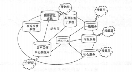 客戶關懷系統的一般結構應該包括接觸層、運作層和分析層,如圖4-2所示。
