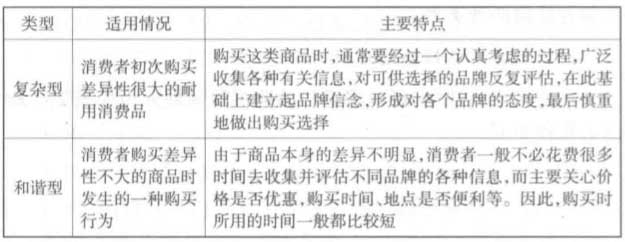 表2 根據客戶購買行為的復雜程度劃分的購買行為類型