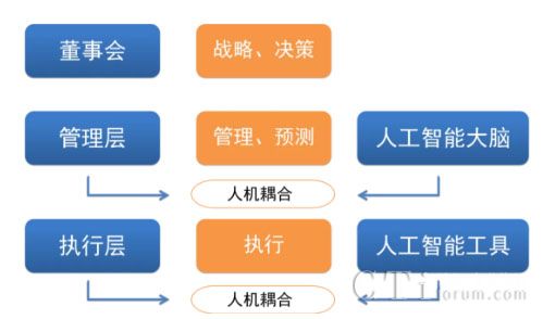 在引進人工智能之前,企業的治理金字塔架構是決策、管理與執行,管理層是公司的中間層,起著承上啟下的作用。向下傳遞決策者的戰略規劃,并細化可執行的目標,引導執行者完成關鍵的結果;向上提供決策信息,補充決策依據。
