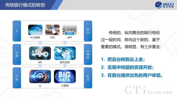 在銀行中,我們如何去實現服務和營銷?銀行營銷數字化轉型應該是什么?我們如何配合我們當前的體系和架構去實現數字化轉型?金融科技一直是我們在討論的議題,金融科技到底是做什么?其實有一句話說得挺對的。首先,要把核心系統也就是后臺部署到云上,什么是后臺?后臺包括產品,交互過程中形成的大量數據等等。然后我們把中間層開放出去。開放的中臺是什么?
