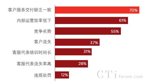 阻礙技術(shù)實(shí)施的要素包括了時(shí)間、高昂成本和資源分配等。 盡管如此, 大多數(shù)受訪者仍然承認(rèn)了技術(shù)所能帶來的豐富優(yōu)勢(shì), 例如提高客服效率、增強(qiáng)服務(wù)質(zhì)量、實(shí)現(xiàn)跨渠道統(tǒng)一服務(wù)等。 為了達(dá)成卓越客戶體驗(yàn), 最大限度發(fā)掘客戶的終生價(jià)值, 緊跟現(xiàn)代化客戶體驗(yàn)技術(shù)的發(fā)展腳步至關(guān)重要。 Forrester調(diào)查(詳見圖1)顯示, 客戶擔(dān)心一旦在技術(shù)上落后,就有可能導(dǎo)致: