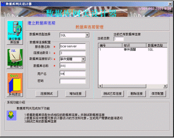 首先使用數據庫網關設計器定義數據庫配置,其中包括數據庫服務器的名稱和數據庫的登陸信息。該系統支持ODBC連接和ADO連接,支持的數據庫有ACCESS,SQL,MYSQL,ORACLE,SYBASE,配置方式如圖四所示。