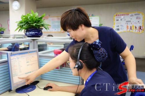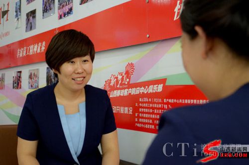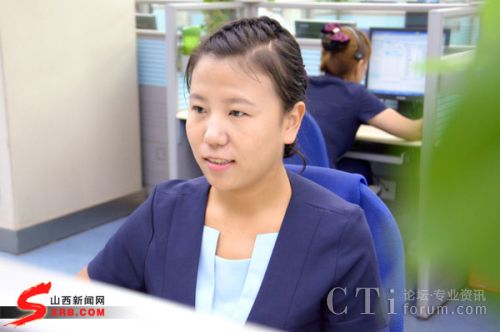 如今,工作十年之久的白林日常管理40多位10086客戶代表,圖中的她正與客戶代表交流心得