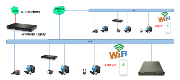 PSTN+中繼網關+網絡交換機+呼叫中心(PSTN的電話資源,即運營商提供的現有的2條電話線路,后續可擴展)。