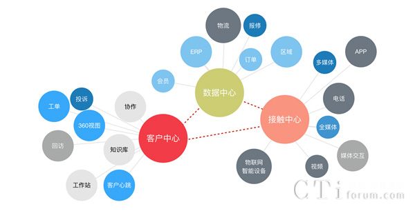 客戶中心:客戶中心是一個開放的業務平臺,主要承擔三大功能。核心業務功能、異構系統交換功能、服務轉換功能。核心業務功能表現為客戶資料、服務請求、工作流、轉辦與監控;異構系統交換功能表現為與用戶核心系統如CRM、ERP、OA、知識庫等等系統的數據交換;服務轉換功能表現為服務業務的分配、分發、外呼。