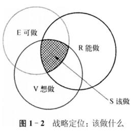 總之,分析環境(E)可以明確企業“可做”什么;分析資源(R)可以明確企業“能做”什么;分析愿景(V)可以明確企業“想做”什么;而戰略就是要確立企業“該做”什么。弄清廣'可做"、“能做”和“想做”什么,“該做"什么就昭然若揭。因此,從這個意義上講,戰略的本質就是“該做”什么,它是“可做”、“能做”和“想做”的有機統一,三者缺一不可。圖1-2中三個圓圈交匯的陰影區域即為戰略描述的地方。