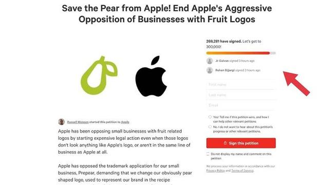 眼看靠自己跟蘋果硬剛是不行了,Prepear轉而尋求網友的幫助,在網上發起聯署“把梨子從蘋果手里救出來”(Save the Pear from Apple)。結果可想而知,Prepear的聯署獲得接近27萬網民支持,蘋果還被網友罵爆了,評論幾乎一邊倒在說,憑什么水果商標只能蘋果自己能用,別人不能用之類的。