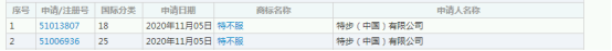 喲喂!別不服,這不,特步(中國)有限公司新增商標申請信息,商標名稱為“特不服”,商標分類涵蓋服裝鞋帽、皮革皮具等,商標狀態為商標申請中。
