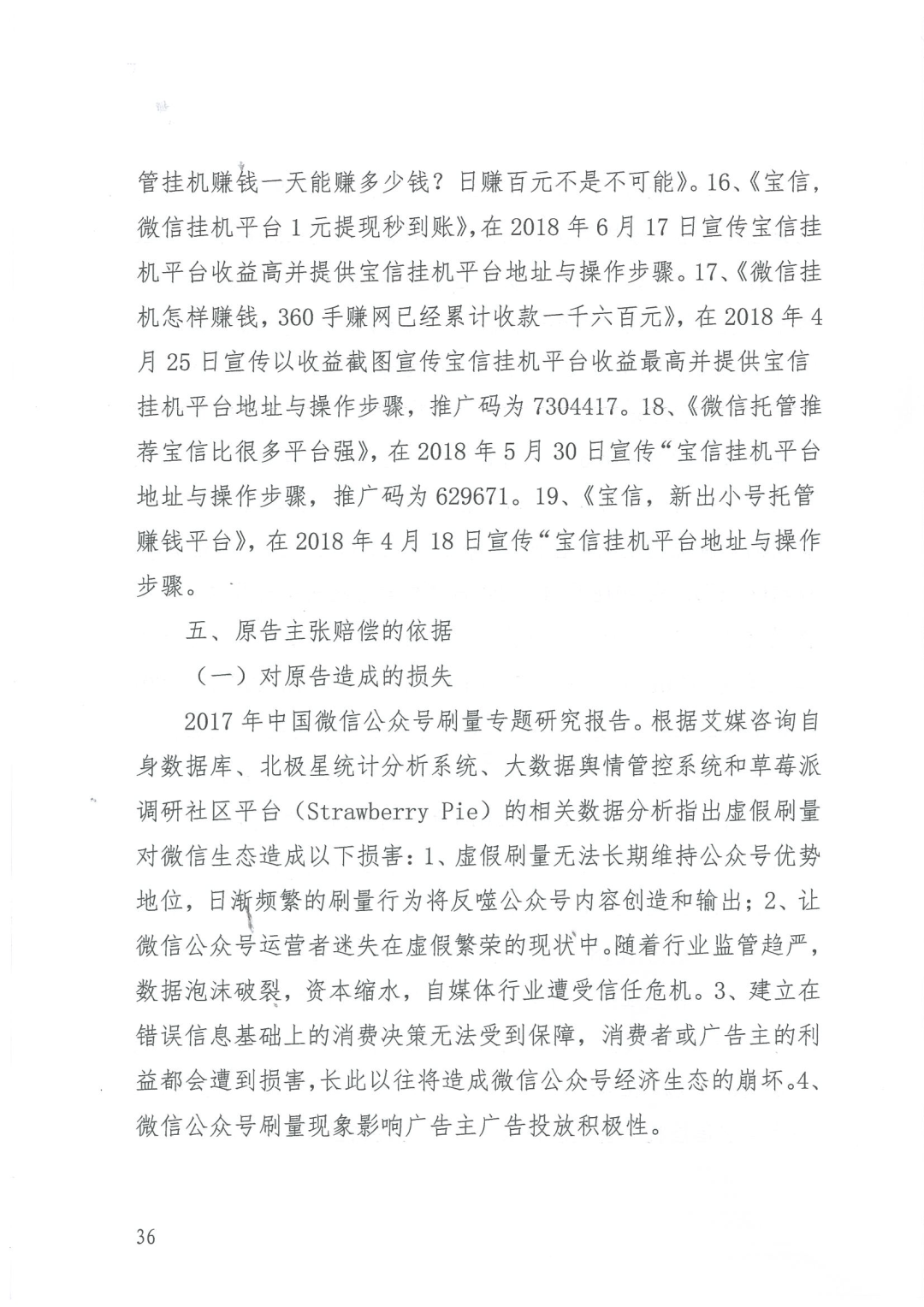 此事因刷量平臺寶信存在為微信公眾號、小程序等刷閱讀量、粉絲、評論、投票等行為,騰訊認為此類刷量行為嚴重破壞微信生態,構成不正當競爭。