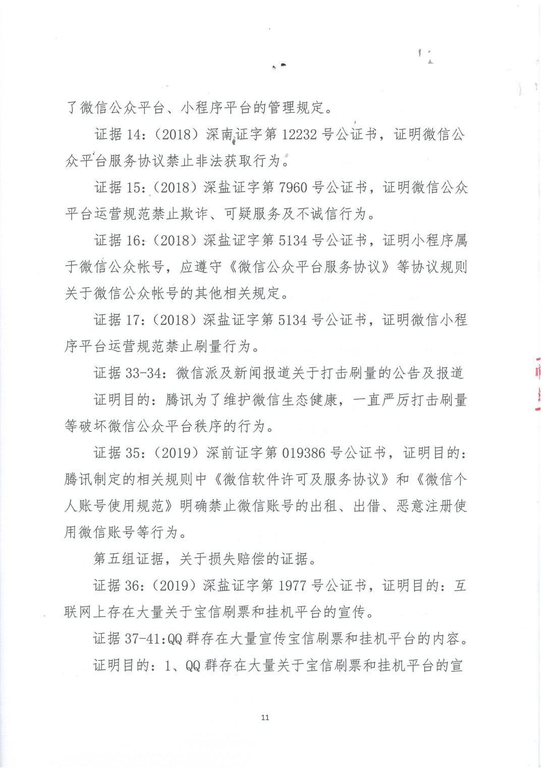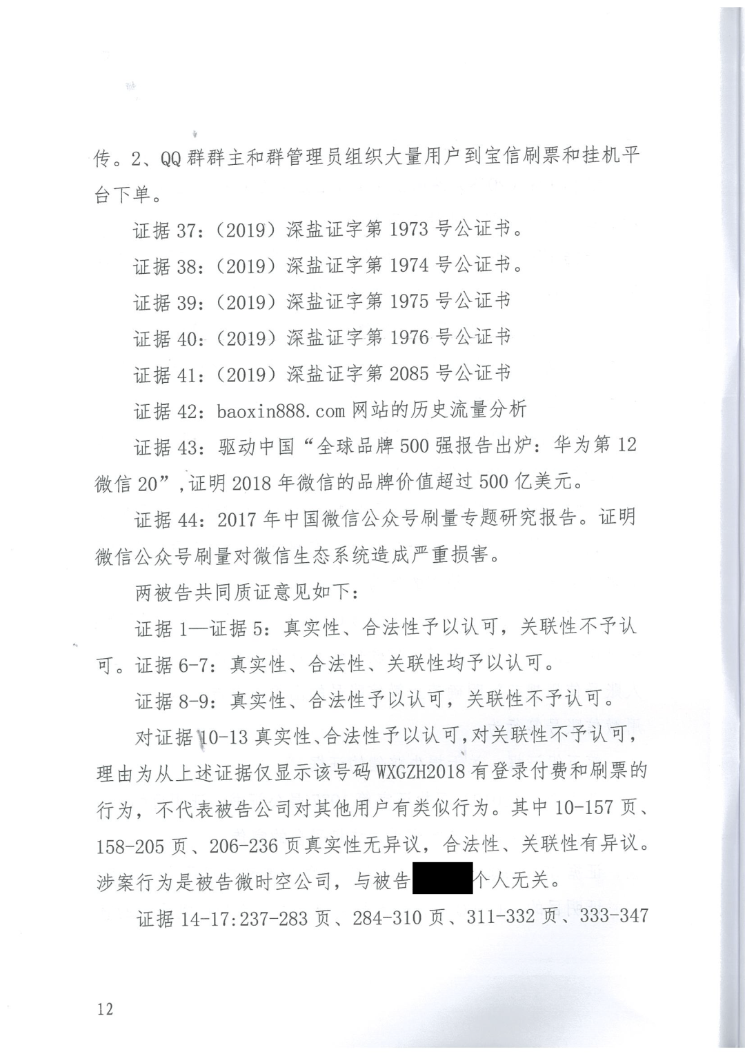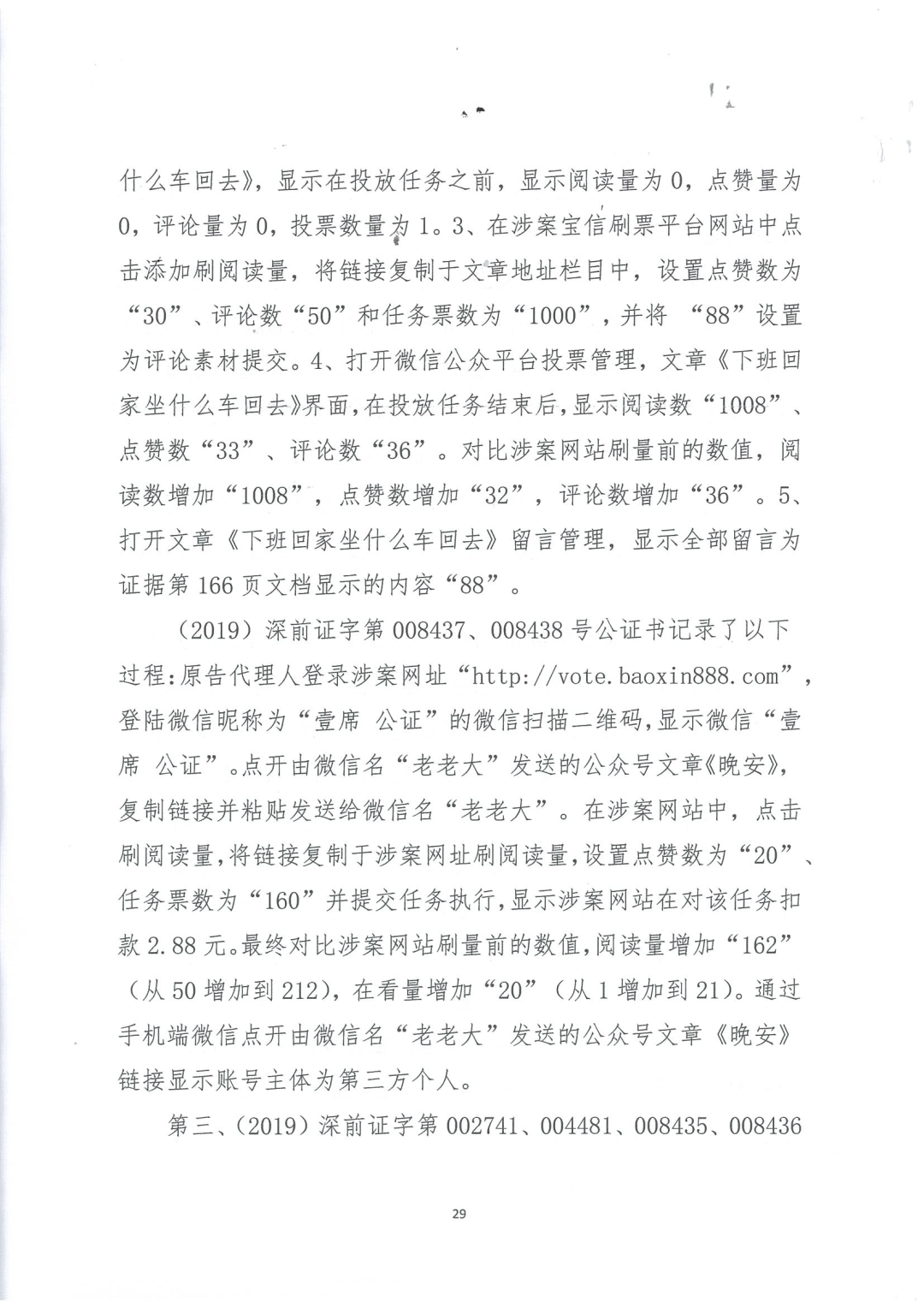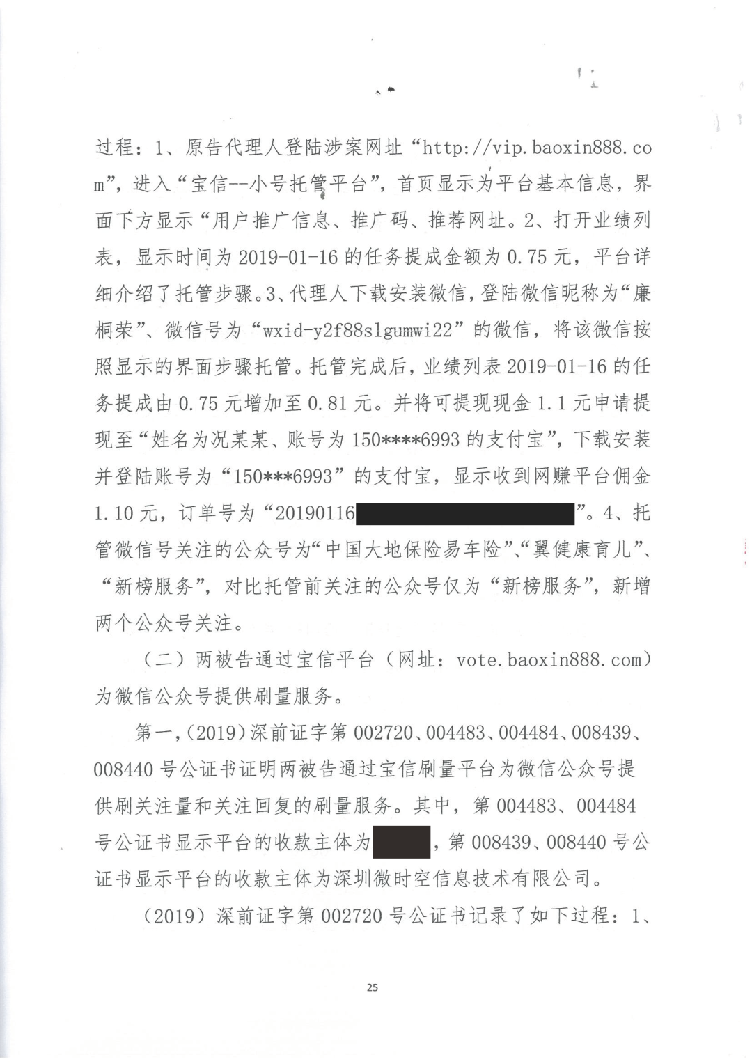 2019年2月15日,因寶信平臺向微信公眾號、小程序的第三方運營者、微信投票參與方提供刷量服務并收取服務費實現盈利,騰訊將其經營主體深圳微時空信息技術有限公司和該公司法定代表人趙某訴至深圳市中級人民法院。