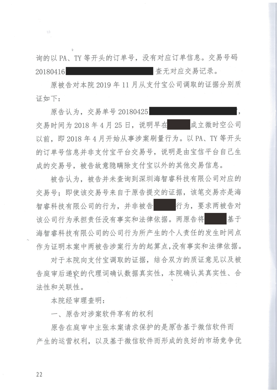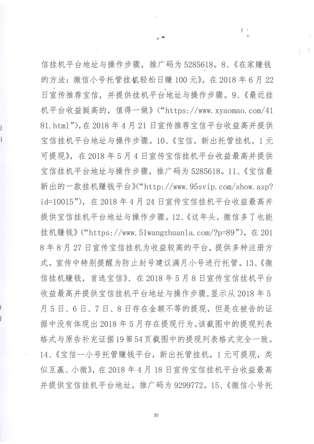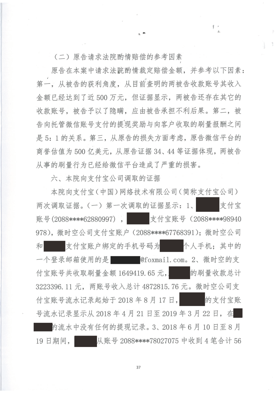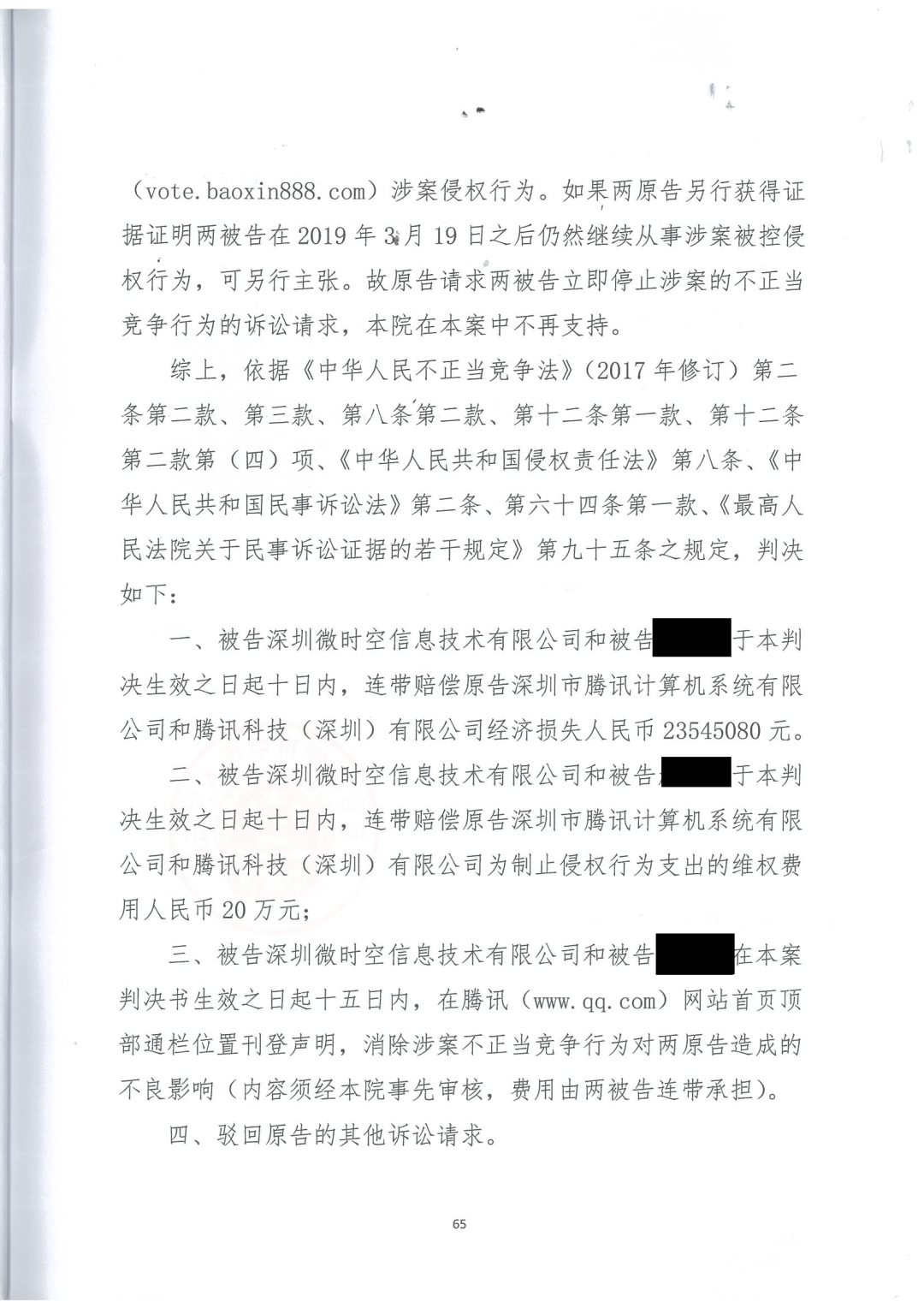 2019年2月15日,因寶信平臺向微信公眾號、小程序的第三方運營者、微信投票參與方提供刷量服務并收取服務費實現盈利,騰訊將其經營主體深圳微時空信息技術有限公司和該公司法定代表人趙某訴至深圳市中級人民法院。