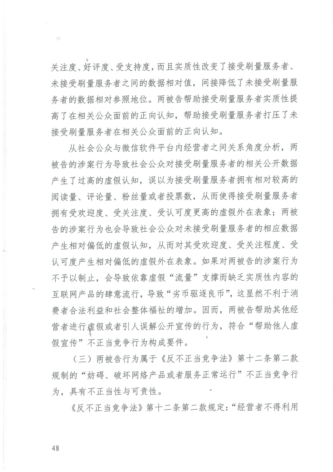 被告使得平臺內的經營者獲得虛假“流量”并變現,破壞了相關行業中以“內容”竟爭為導向的正常競爭秩序。