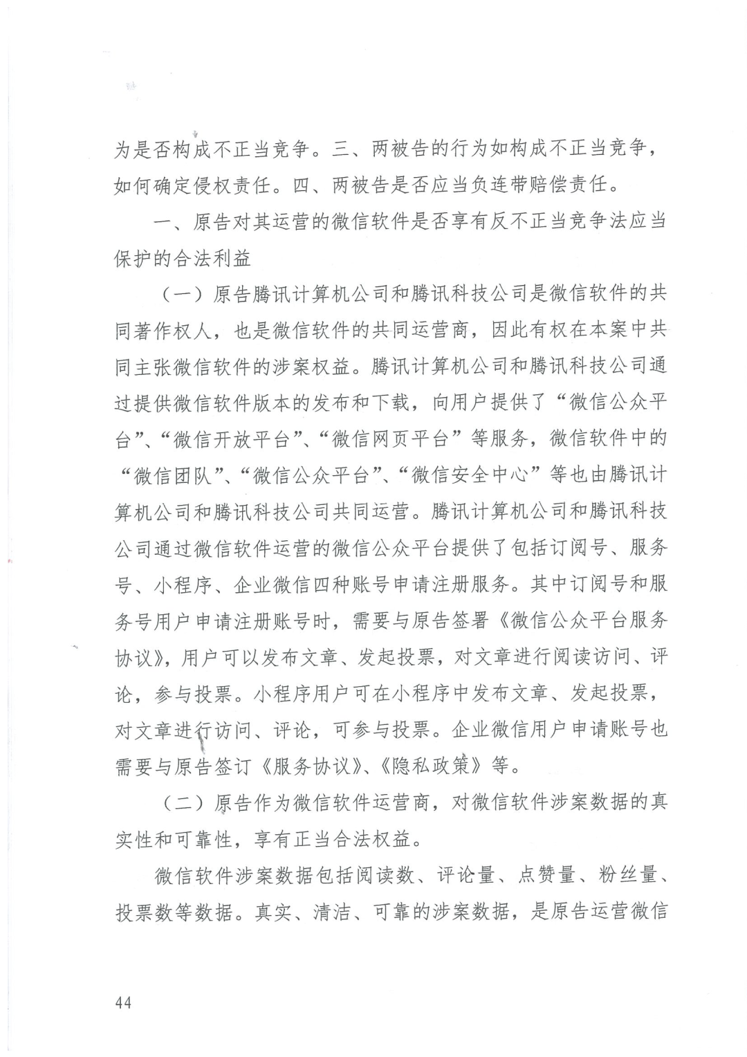 法院認為,兩被告雖然不是微信公眾號和微信小程序的用戶,且未簽訂相關服務條款,但仍屬于受《反不正當競爭法》規制的、與騰訊存在競爭關系的經營者。