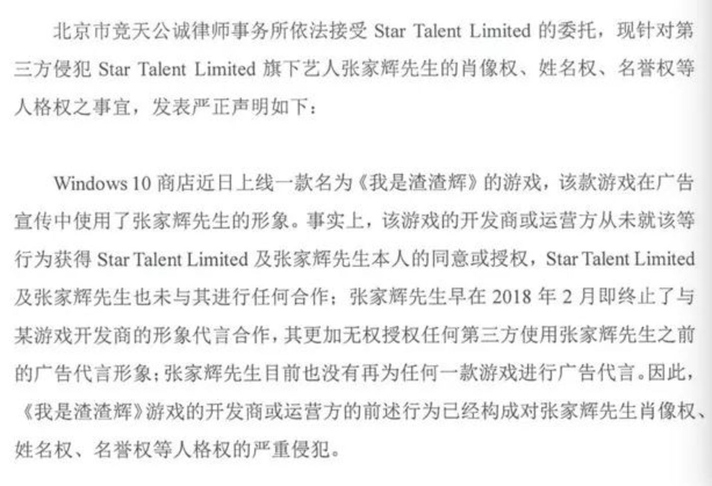 雖然張家輝方面對(duì)此并未給出回應(yīng),但網(wǎng)友普遍相信該注冊(cè)人正是演員張家輝本人。而張家輝注冊(cè)這些商標(biāo)的目的,或許并非是為了賺錢、牟利,而是希望能夠防患于未然。畢竟2018年時(shí),就有平臺(tái)推出過一款名為《我是渣渣輝》的游戲,直到張家輝工作室介入、發(fā)布譴責(zé)聲明,侵權(quán)游戲才下架。