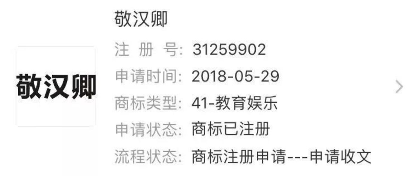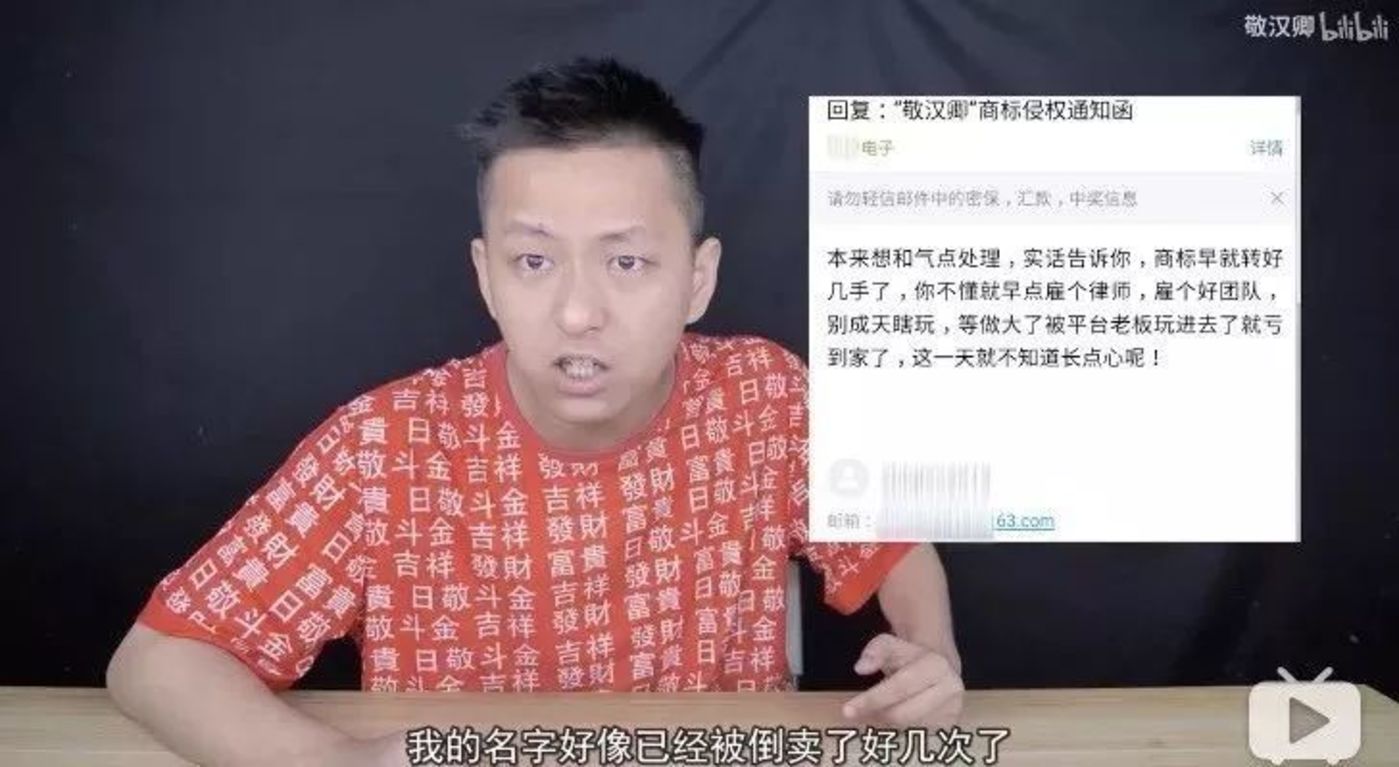 B站UP主敬漢卿名字被惡意注冊(cè)商標(biāo)